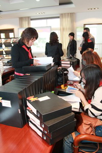 检查小组一行在徐校长和大队辅导员的陪同下,巡视了学校的少先队环境布置、参观了队室、参加了由六(3)中队开展的“纪念碑前”队会,最后才仔细的查看了台账资料。