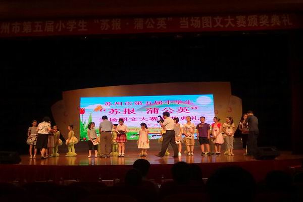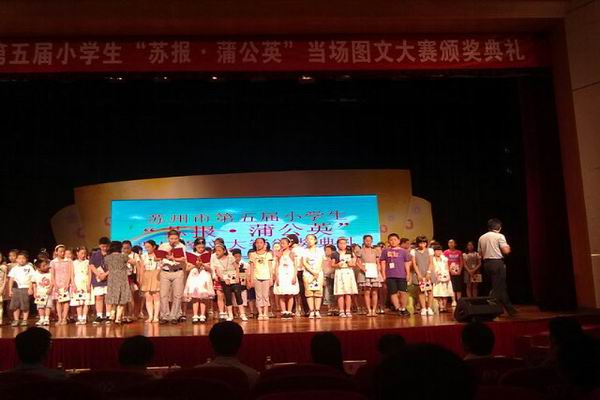 第五届“苏报蒲公英”小学生图文当场作文大赛昨天在沧浪少年宫举行了颁奖典礼。 颁奖典礼在平直师生表演的《紫丁香》中拉开帷幕,激情澎湃的诵读节目展现了当代小学生尊师重道、昂扬向上的精神风貌。