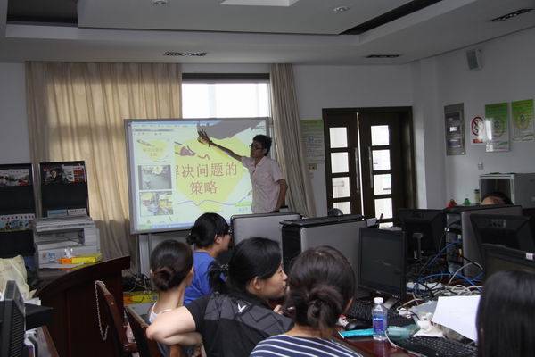 外面是骄阳似火,老的教学楼已经成为繁忙的工地,正在进行加固工程,而新大楼的会议室中也是热火朝天,老师们带着自己制作的课件,带着对白板应用的疑惑,专心地聆听着专家的指导。一开始,有些用惯了PPT制作课件的老师觉得白板费时费力,效果还没有PPT漂亮,但是,随着专家培训地步步深入,老师们的注意力都被白板的互动性所吸引,争先恐后地说起了自己的上课设想,再由专家一一指导实现。老师们的积极性被充分调动了起来,也越发感受到了白板软件制作课件的优越性,纷纷在电脑上操作起来,培训专家穿梭于一台台电脑中,为老师们解疑答惑。