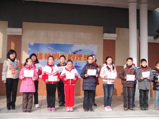 活动首先表彰了我校在区第五届“阅读之星”评比活动中表现突出的同学们。2010年,沧浪区为进一步营造书香校园文化氛围,鼓励学生以书为友,丰富课外阅读,养成良好的读书习惯,开展了别开生面的“阅读之星”评比活动。活动伊始,平直的孩子们就被各种各样有趣的校园阅读氛围感染着,大家积极通过各种途径争读好书,班级漂流图书、校园电子阅览室、科技图书资源共享等诸多形式的阅读活动,吸引着大家在课外之余争读有意义的书籍,给大脑充电。“蒲公英”作文大赛中,平直的孩子们依旧以独有的热情将他们的阅读收获化为笔下涓涓的文字。报刊、杂志、博客……孩子们尽情地展示着他们在阅读过程中所获得的精神食粮,书写着他们稚嫩而多彩的成长历程。在新的一年的饱满春光下,当孩子们接过俞教导手中,那张浸润着他们辛勤汗水的“校级阅读之星”的光荣奖状时,激动之情溢于言表。紧接着,荣获苏州市沧浪区第五届 “阅读之星”称号的孩子们在无数羡慕的目光下接过了赵校长手中那张沉甸甸的奖状,回眸过去的一年,书籍带给他们的不仅仅是一份知识的收获,更是一份心灵的慰藉。赵校长在颁奖之余,兴奋地向孩子们传达了她此刻的收获与欣喜,她表示:“当你们懂得开始享受阅读的妙处时,是我们老师最大的收获。”