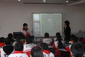 平直实验小学青年教师章燕妮进行了移动数字化数学课堂教学展示,在“一对一”的课堂里,孩子们灵活操作着笔记本,颇有兴致地解答着一道道数学难题,真正实现了“一对一”的教学。“一对一的数字化学习”既保留了课堂教学的形式,又充分注意到个性化学习的特点,整齐统一中求变化,变化中又能够做到大体一致。这一模式正是移动数字化课堂教学的亮点。