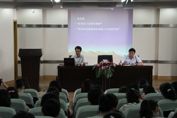 ,星期三下午三点三十分,我校迎来了实验中学副校长、副书记 —陈平校长。说起陈平校长来头可不小。“江苏省特级教师”、“江苏省劳动模范”、“苏州市劳动模范”、“苏州市名教师”、“苏州市十佳青年教师”、“苏州市首批跨世纪高级人才培养对象”这些都是陈校长用心血换来的荣誉。但是实际上陈校长还有一个特殊的身份,那就是我们平直实验小学的校友。因此平直全体在职教师和一些退休老教师在台下听讲座时,心情特别激动。从平直走出去的人才又回来了,究竟会带给我们怎样的收获呢?
