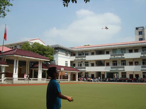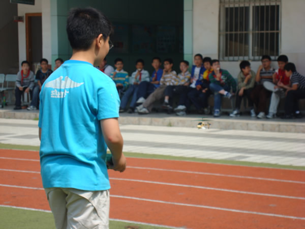 同学们先举行激烈的遥控飞机比赛,参赛选手纷纷使出全身解数,你追我赶,不甘落后,最后六(1)班同学取得了冠军,我班的金旭平同学屈居第二。