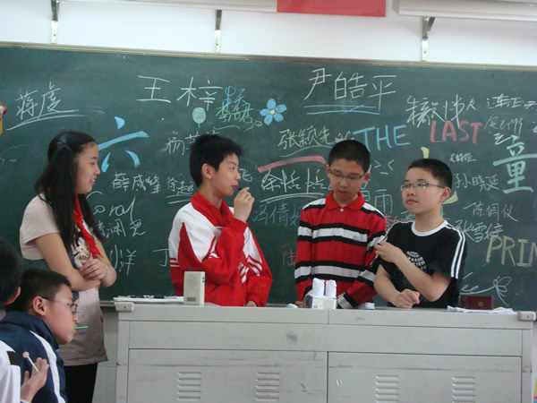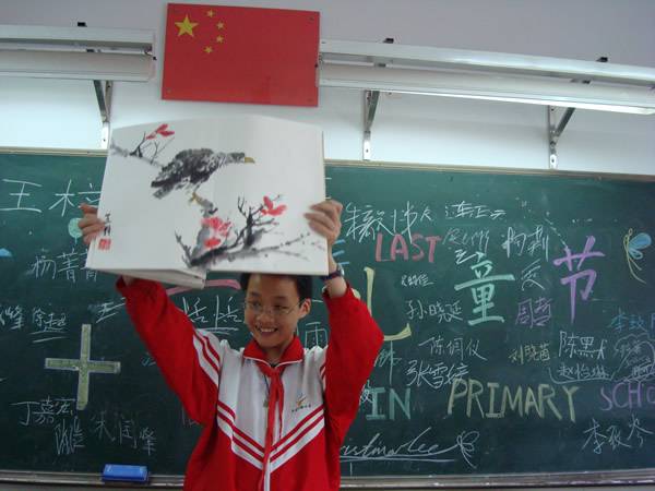 接着是每个班自己举办班队活动。我班的活动颇具特色,主题是:“六+一”儿童节,很有意思吧。我们还在黑板上画出美丽的图案,每个同学还签上了自己的名字,意味这每个同学的心都连在一起,友谊地久天长。我班有44个同学,每人都带44份零食,然后和其他每个同学交换,这样,大家就都得到了44份不同的零食。予人玫瑰手有余香,好东西大家分享就变成44×44份。尹东篱同学还带了自己亲手做的寿司,得到了大家的一致好评,可见她花了一番心思,同学们一定都体会到了她对母校浓浓的爱。接下来是临别赠言,每个同学都上台对自己的好朋友说些心里话。一句句感人肺腑的话语让同学们深受感动,有些情感丰富的同学都哭了。中间还穿插这同学们的表演。有不可思议、让人拍案叫绝的魔术,有滑稽搞笑的小品,有精美绝伦的国画展示……同学们都不亦乐乎!