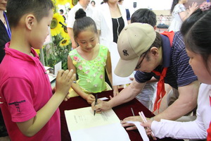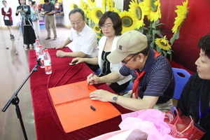 教授感慨的写下提词“我亲爱的母校 深深地眷恋”。