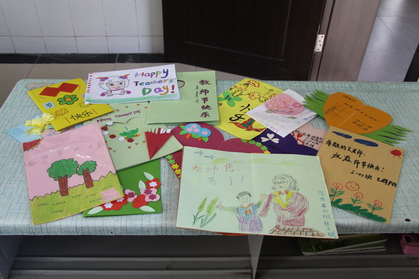 “老师就像蜡烛一样,燃烧自己照亮别人,默默的在自己的岗位上耕耘,无私的奉献自己。”,“在人生的旅途上,是老师为我们点燃希望的光芒,给我们插上理想的翅膀,翱翔在知识的海洋上。”,“敬爱的老师们,没有春的耕耘,哪里的荷香十里,愿你们永远是使者,将和煦的阳光洒向人间。”,“父母给了我们身躯,你们给了我们灵魂,这两者塑造了今天的我们。老师们,是你们启迪我们真正领会了大自然的恩惠,从此我们读懂了每一瓣绿叶,每一片彩云,每一朵浪花。你们满情爱心地创造出一支强大的队伍,将来为祖国出力。 ”,“老师,祝您教师节快乐!”这些都是平直的孩子送给他们最敬爱的老师的,目的就是为了迎接第26个教师节的到来,感谢老师对他们的尊尊教诲,特别值得一提的是,孩子们送给老师的贺卡都是自己动手制作的,老师对孩子们这种低碳环保的行为也表示支持,同时也谢谢孩子,他们的祝福老师收到了,老师永远爱你们。