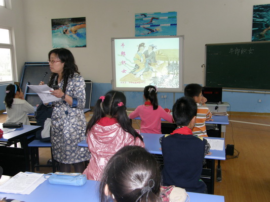在活动中,区语文骨干研修班的几位老师为大家献上了一道丰盛的教育盛宴。孙莉、杭凤娣、张瑾老师执教了三下《槐乡五月》;叶虹、袁平霞老师执教了六上《牛郎织女》一课,她们围绕同一教学内容,根据自己对文本的理解和独具匠心的教学设计,运用不同的教学方法、精练的教学语言和多样的教学手段,精心组织课堂教学活动,将新课程理念很好地融入到了课堂教学之中,学生们在愉快中接受着丰富的知识,在思考中碰撞出智慧的火花,从而促使听课教师在比较中互相学习、互相借鉴、扬长避短、共同提高。