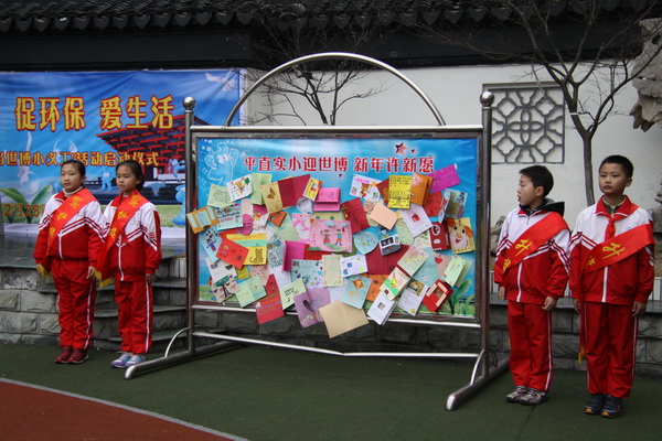 “我教爷爷奶奶说英语”、“我为妈妈画笑脸”、“文明出行保安全”、“注重环保护大地”、“文明礼仪展风采”、“畅想未来唱童年”、“精彩世博我参与”等系列活动的设计不仅丰富了学生的学习生活, 更让孩子们在感恩、安全、礼仪、创造等方面的行为素养都有所提高,真正为世博会出一份力。