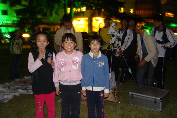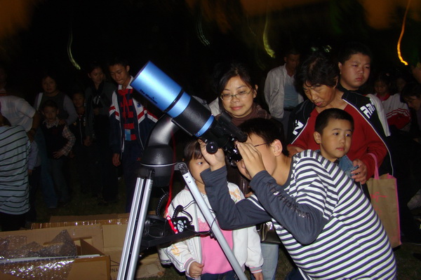 小学生在中学生的指导下进行天文观测,了解了基本的天文观测知识,看到了月亮的面貌,激发了探索天文的兴趣,同时也受到了家长的欢迎。