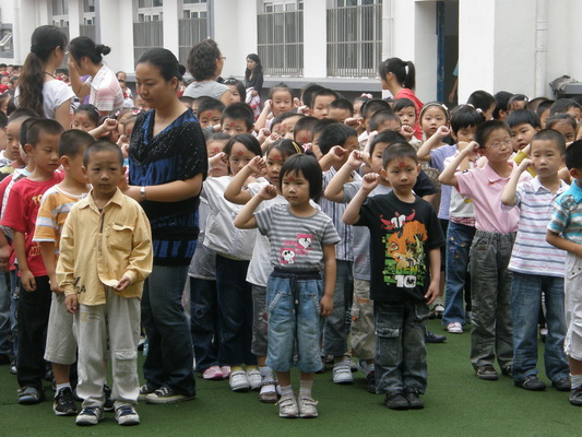 2009年9月1日上午,平直实验小学的校园里充满了新学期的新气象,一大清早, 校领导和一年级的班主任都早早地来到了校门口,为的是迎接一年级新生。