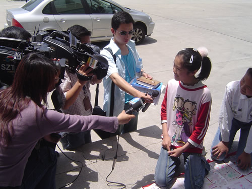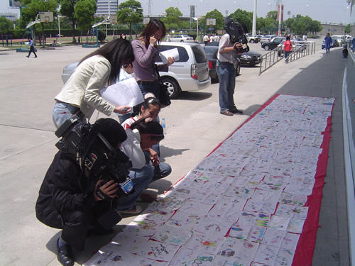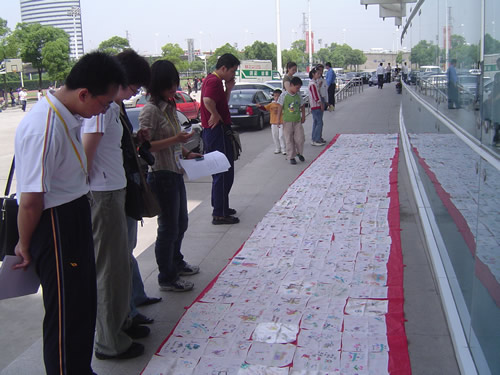 苏州平直中心小学一至六年级各班各小队的同学以富有苏州特色方式,庆祝三体会在苏州的召开。他们人人参与、个个动手,把三体会的会徽、吉祥物、奥运福娃画在、绣在真丝手绢上,开展了签名活动,表达了对三体会的一份心意,给三体会献上了一份珍贵的礼物。