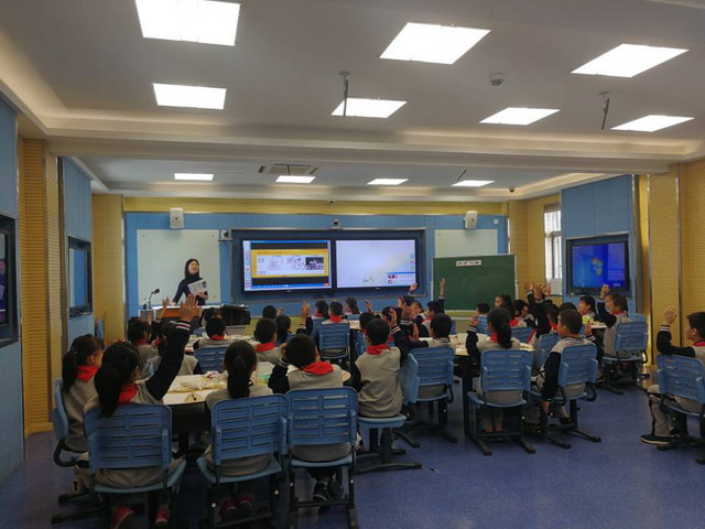 2018年10月18日下午,“姑苏区美术学科信息化教学能手现场上课决赛活动”在万彩网100线路的未来教室进行。本次赛课比赛分别由金阊实验小学的刘凌老师,新康实验小学的王佳老师,胥江中心小学的沈希希老师,三位教师来执教同一个课题《水墨改画》,三位老师将先进的信息技术与美术融合,在信息技术的支持下,引导学生学习如何用毛笔将油画改画成一幅幅生动有趣、充满创意的中国画,让中西合璧。课堂结束后,姑苏区信息中心卢主任与美术学科教研员钱老师还在和各位美术老师探讨其中的教学策略,探究信息手段的效果。