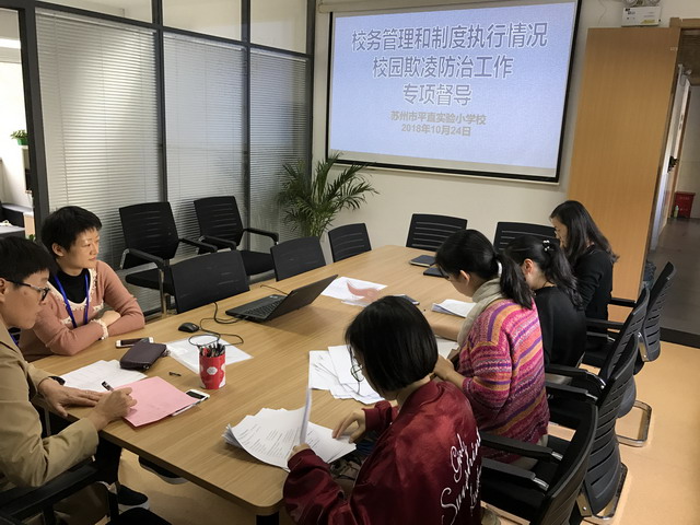 平直实小将以此次专项督导为契机,进一步抓好校务管理和制度执行,促进学校健康、规范发展,努力打造人民满意的教育。在当前社会环境下加强预防校园防欺凌事件尤其重要,两位督学殷切希望学校在预防机制,治理的常态化、制度化方面继续抓好抓实,以预防为抓手,坚决将校园欺凌扼杀在萌芽状态,为孩子们创设一个和谐的校园环境!