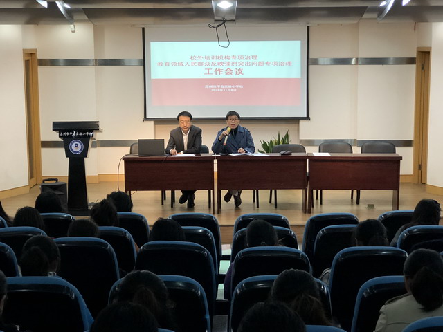 当天下午4时半,万彩网100线路召开全体教职工大会,就姑苏区 “规范校外培训机构专项治理和解决人民群众反映强烈问题专项治理”的工作做了专门部署。