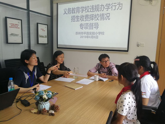 2019年6月6日下午,姑苏区人民政府督导室专职督学倪建平、兼职督学季文学来到平直实验小学校,对学校的招生、收费、择校等情况进行专项督查。