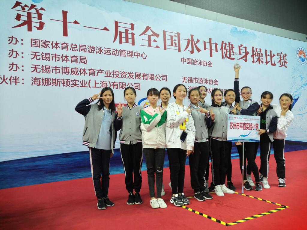 10月26日至27日,由国家体育总局游泳运动管理中心、中国游泳协会主办,江苏省社会体育管理中心、无锡市体育体育局承办的“第11届全国水中健身操比赛”在无锡新体育中心游泳跳水馆举行。平直实验小学共派出16名运动员积极参赛,并摘得小学组冠军。