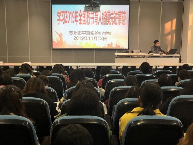 为弘扬时代精神,发挥楷模的带头引领作用,践行社会主义核心价值观,加强师德师风建设,2019年11月13日下午,苏州市平直实验小学组织全体教师学习2019年全国教书育人楷模先进事迹。