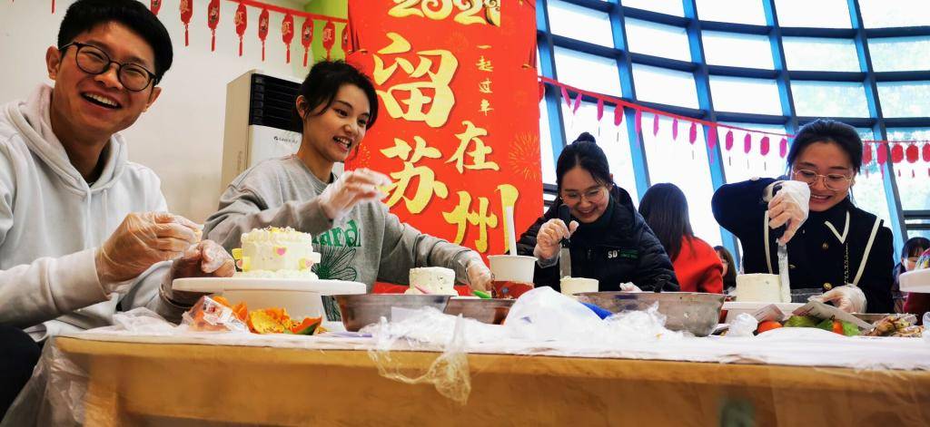 为了让留苏老师们过个祥和幸福年,充分感受到集团的关怀和温暖,2月4日在北方小年的这一天,平直教育集团工联会特举行迎新春文体活动。集团总校长、工联会主席、各校校长及工会主席与集团内二十多位留苏过年的老师们欢聚在一起,做蛋糕、包饺子、写福字、玩游戏……其乐融融,暖心又暖人。