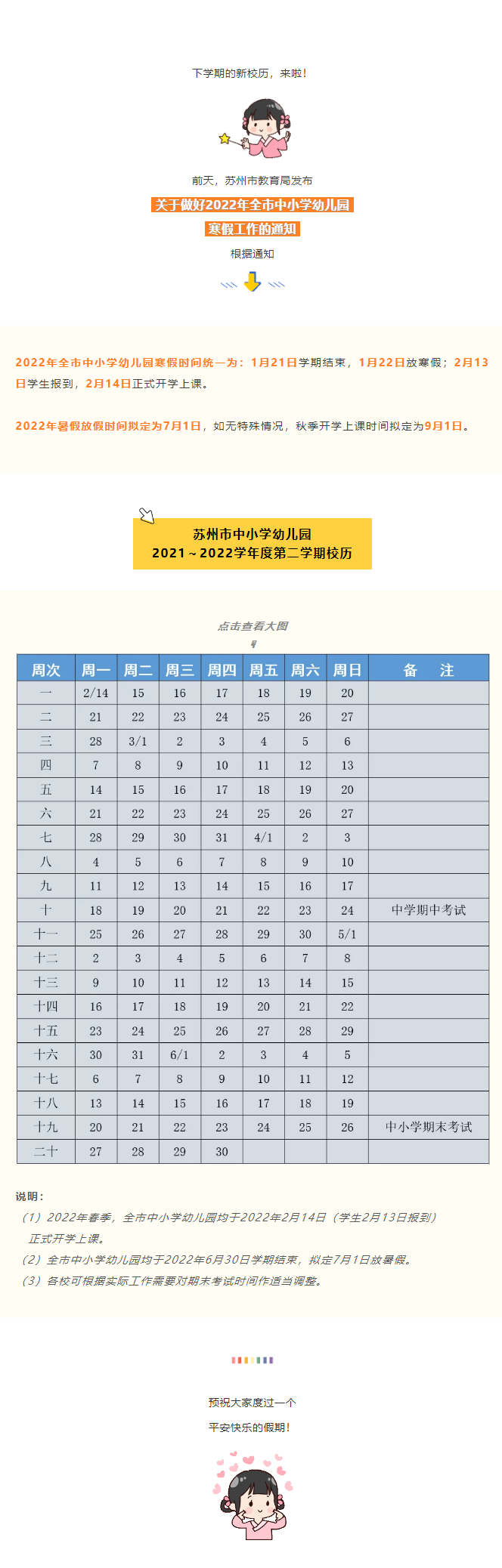 注意收藏苏州市中小学下学期校历!