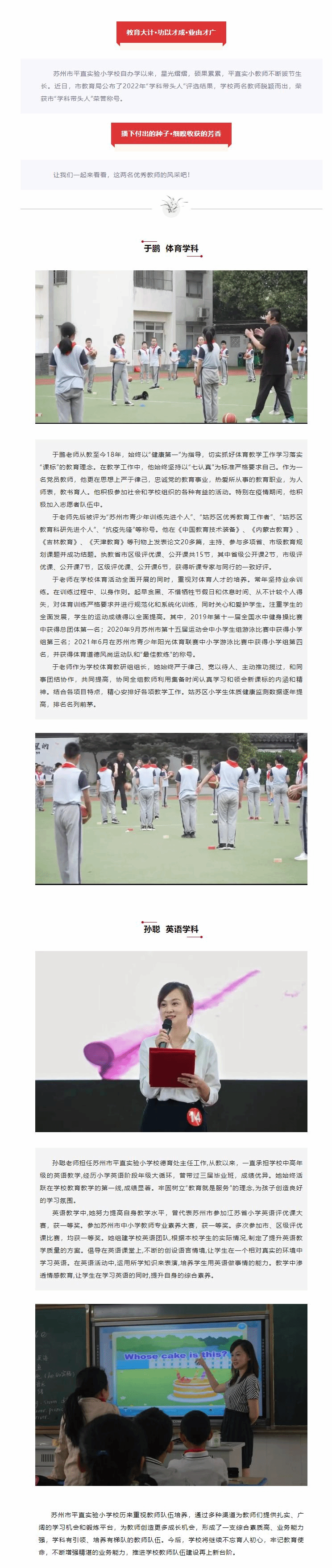 星光熠熠耀杏坛 硕果累累展新姿 | 祝贺我校两名教师获评苏州市学科带头人