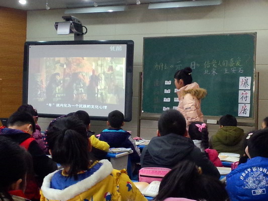 单洁云老师和蔼可亲,全身心投入,用自己的情感调动了学生学习的积极性,并利用丰富的教学资源,给我们带来了一堂精彩的诗歌鉴赏课——《元日》。课上,单老师指导学生学习用读、品、悟、赏的方法来学习诗歌,最后还将这四个字印在自己亲手制作的红色书签上赠送给学生。单老师如此认真准备,精心设计,学生收获满满,同时获得了听课老师们的一致好评。