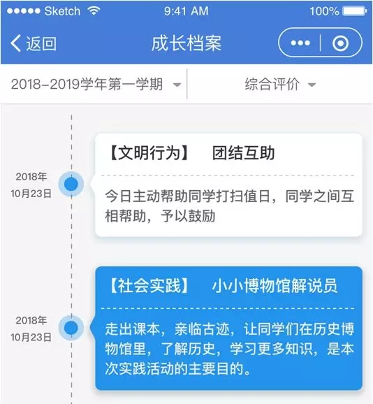 家长通过手机端可以查看学生的综合素质评价情况,家长也会参与学生的综合素质成绩评定,家长在手机端录入成绩提交班主任审核;家长可以实时查看学生的成长档案,各维度发展情况一目了然。
