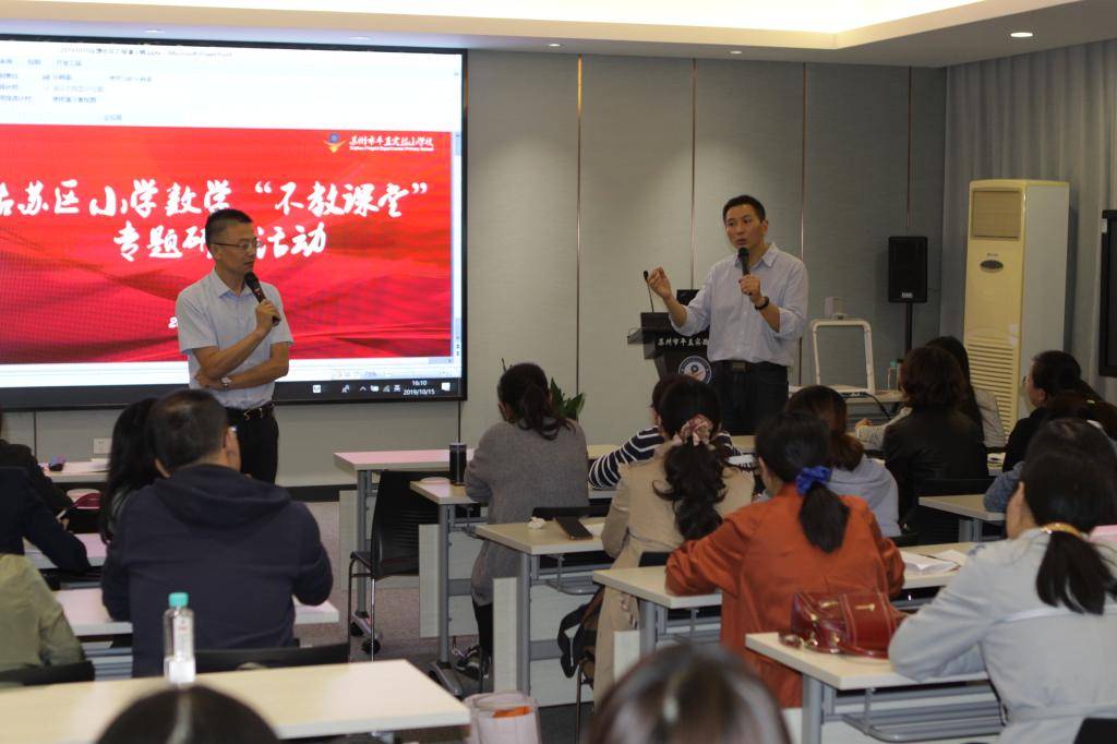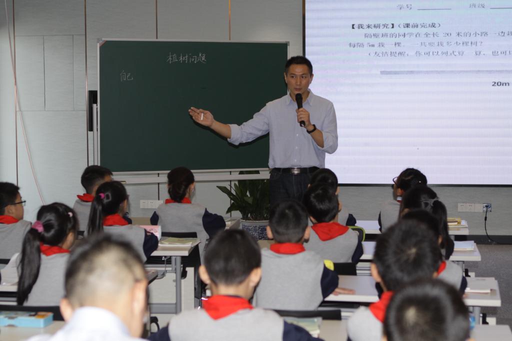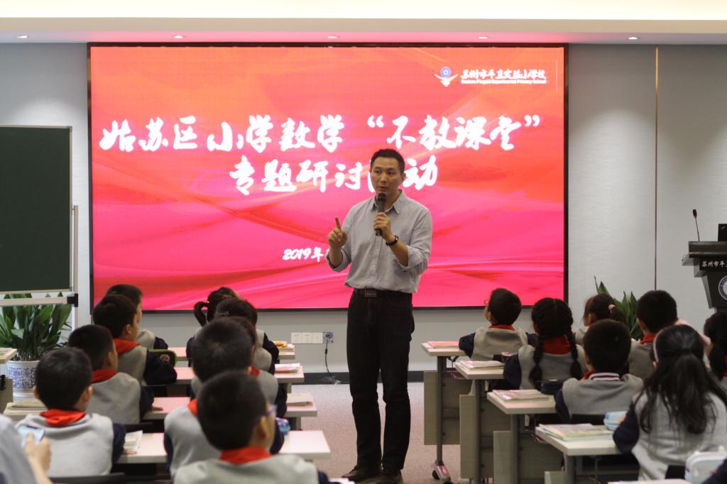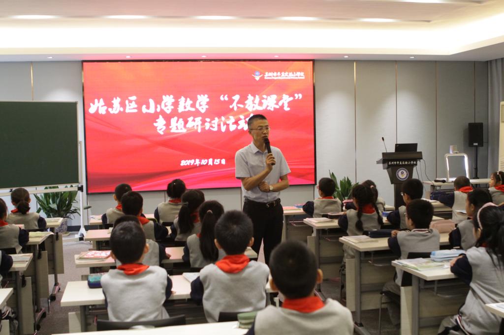 10月15日下午,姑苏区小学数学“不教课堂”专题研讨活动在平直实验小学如期举行。来自姑苏区各学校的数学分管行政和“不教课堂”实践骨干教师参加了本次研讨活动。来自南京市小营小学副校长,南京市学科带头人,“张齐华名师工作室”核心成员的宋洁老师为大家带来了《植树问题》一课。宋老师在课堂上,通过蕴含数学问题的情境,让孩子们独立自主地思考和自信大方地表达,再进行师生间从容淡定地互动,让孩子们形成共识,生成数学理解,在无形中学会了知识要点。随后宋老师又以“向学习深处漫溯”为主体做了专题讲座,并与姑苏区数学教研员蔡宏圣老师及与会老师们进行了现场互动和研讨,令在场老师获益匪浅,为老师们今后实践和探索“不教课堂”指明了方向。接下来,平直实小数学教研组将会继续举行研讨活动,促进老师在教学中抓住训练重点,让自己的课堂更加有效,切实提高学生解决问题的能力。