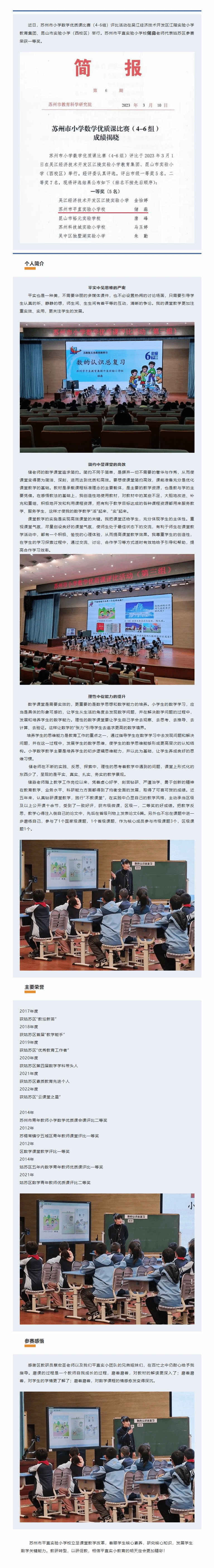 喜报|平直实小储淼老师荣获苏州市小学数学优质课比赛(4-6组)一等奖!