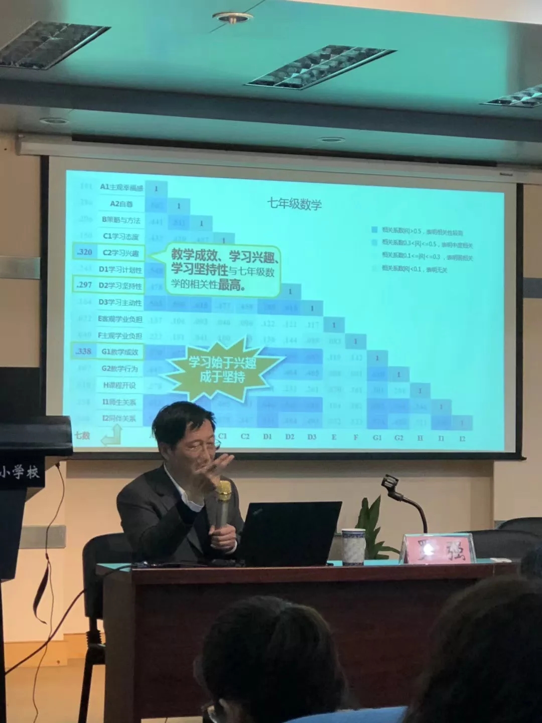 其次,他认为要推进以学生为本的课程改革和课堂教学改革,从研究学生学习品质、学业负担、学业支持入手,找准减负增效提质的着力点,让把学生培养成具有情感张力、生命活力、思维能力、学习动力的终身学习者。