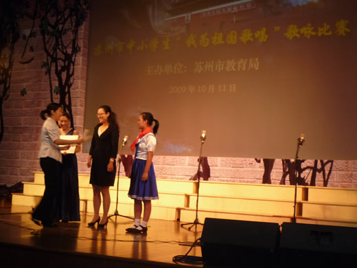 在庆祝祖国60华诞的喜庆日子里,我们平直实验小学“小百灵”合唱团也收获了一份成功的喜悦。在10月11日由苏州市教育局举办的苏州市中小学生“我为祖国歌唱”歌咏比赛中,从来自苏州大市的十余个参赛队中脱颖而出,获得了小学组一等奖的好成绩。