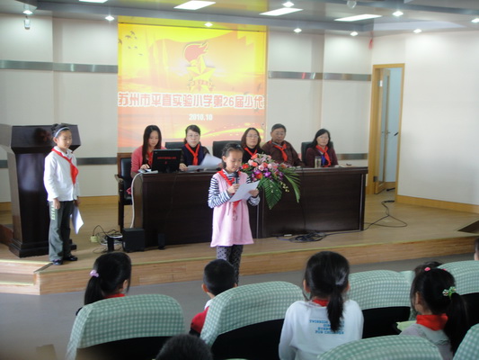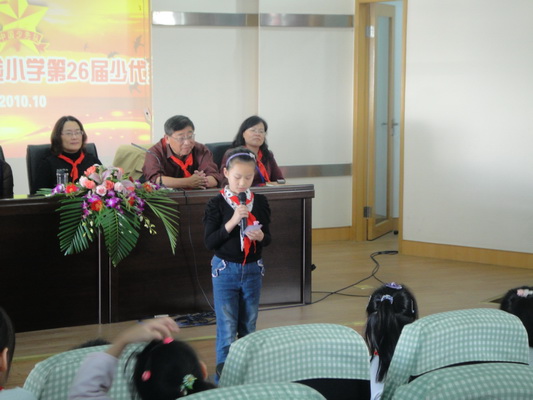 中午,我校召开了第26届少先队代表大会。本次大会共有100多位少代会代表,31位大队委候选人参加。徐玉英校长、杨红霞书记、特邀“首席德育导师”惠桦老师、大队辅导员方芳老师和团支部书记卞瑞君老师都到会表示祝贺。随着出旗曲响起,少代会正式开始了。先是由陈蓉榕和徐秋晨同学为本次少代会献词。紧接着张涵芊同学总结了这一学年来大队部所做的一系列工作,以及获得的成绩。大队委竞选由六(1)中队的刘佳平同学开头,31位大队委候选人依次上台进行了激情洋溢的竞选演说。他们自信、大方的表现,赢得了代表们的信任和钦佩。同时,他们希望能够通过此次竞选,为自己找到一个施展才华的平台,也希望能够更好地为同学,为学校服务。“首席德育导师”惠桦老师也在会上给少先队员们提出了殷切的希望和要求。最后由各中队做提案报告,徐玉英校长逐一为同学们进行了详细的解答。本次少代会圆满举行!
