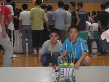 本次比赛前,组委会曾多次对比赛器材要求及比赛规则作了修改,我在最短的时间内,本着高效节约的原则,对机器作了有效改装,以适应比赛要求。本次比赛采用国际规则,即采用联赛制,这就要求各个队伍、各位队员必须要有强烈的合作意识和合作能力,在随机配队时,所有的比赛,与我们组队的都是来自其他地区的队伍。我们参加的四场比赛中,与我们合作的安徽合肥队比赛时机器出现故障,凭着我们一辆车对抗对方两辆车,虽然我们的队员徐臻青同学在自动、遥控操作两方面都发挥正常,但最后还是输了这场比赛。