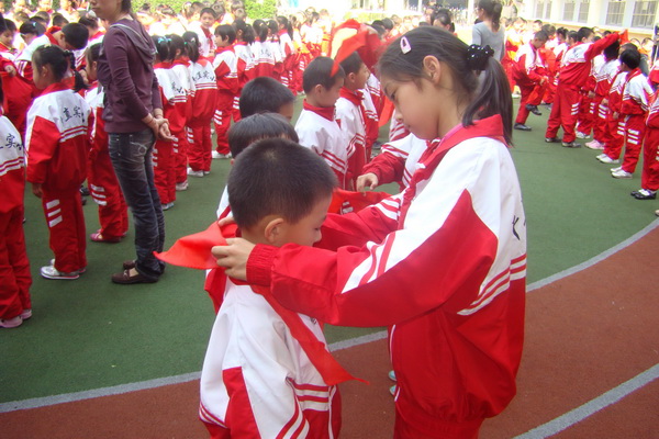 4月30日是一个值得高兴的日子,因为又有一大批同学光荣地加入了少先队组织,我们的少先队组织又增添了新的血液!新队员看着胸前飘动的红领巾,感到无比的幸福和自豪。当他们戴上鲜艳的红领巾,成为一名少先队员时,就到达了人生进步的起点,并跨出了重要的一步。他们时刻铭记:不管将来走到哪里,不管他们从事什么样的工作,都是祖国的儿女,肩负着先烈们没有完成的事业。只要祖国需要,他们也会像先烈们一样毫不犹豫地奉献一切,即使没有显赫的名声,没有丰厚的报酬,他们也无怨无悔。他们以先烈为榜样,继往开来,用自己的热情、自己的才智,让我们的祖国更加繁荣、富强,让我们的人民更加幸福、安康!让我们的母校因有这样一群可爱的少先队员而感到骄傲!胸前的红领巾激励着他们好好学习,看着那坚定的眼神,相信少先队员们会用实际行动为红领巾增光,为平直实小美好的明天献出自己的力量!