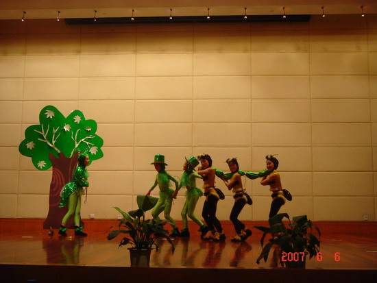 我校的课本剧《蚂蚁和蝈蝈》也参加了这次比赛,获得了银奖。同学们捧着奖杯,已经忘记排练的辛苦了。