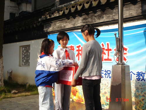 在上周的国旗下讲话中,大队部号召全校的少先队员开展了“节约一元钱,献出一份爱,帮助小伙伴” 的苏苏、州州希望行活动,帮助贫困山区建立希望小学,用实际行动来帮助我们的小伙伴走进学堂。