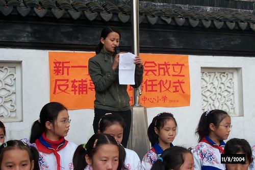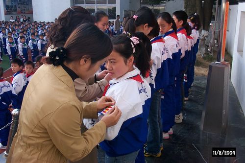少先队换届选举揭晓,校领导颁发证书.