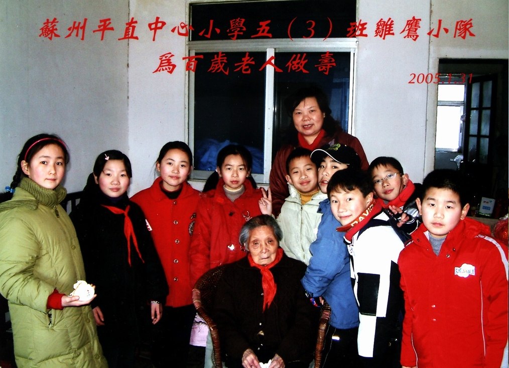 1月31日,学校领导带领雏鹰小队为社区百岁老人祝寿.
