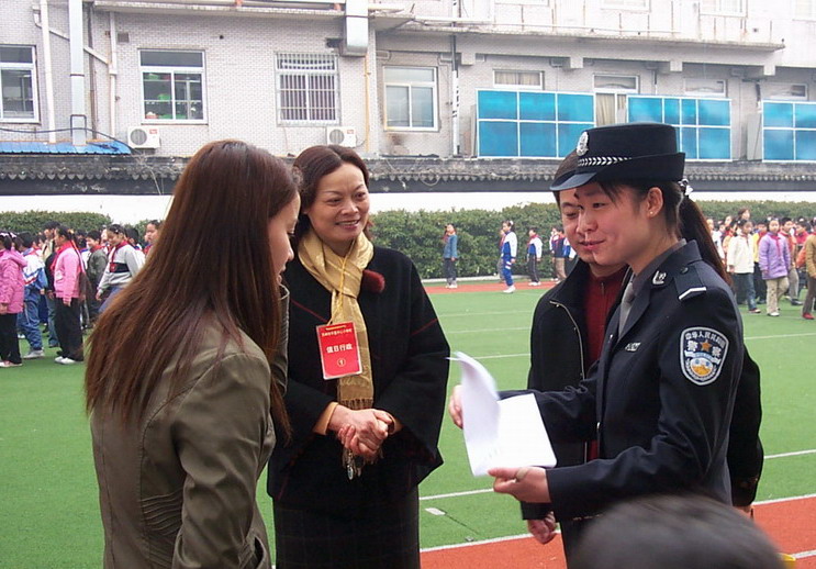 学校安全教育周集体晨会,邀请公园派出所的刘溪警官给大家讲课.