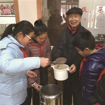 112,正值三九严寒,学校全体师生在大队部的倡议下,开始收集腊八食材原料:枣、花生、胡桃、苹果、梨、香蕉、桂圆肉、瓜仁、米仁、赤豆……大伙儿以小组为单位精心记录下每一样食材的营养成分及价值,并一起学唱《腊八歌》:大雪纷飞腊月到,一年节俭到今朝;积得粮食烧锅粥,暖暖和和度寒宵。114日,在欢欢喜喜的期待中,大伙儿迎来了过腊八节、吃腊八粥的日子。老师说:“今天是腊月初八,同学们请用腊八粥。”孩子们齐声答道:“谢谢农民伯伯,谢谢爸爸妈妈,谢谢老师,谢谢同学,大家请用!”与此同时,学校的一部分党团员老师及青年志愿者教师代表、学生代表、平直家委会成员、义工妈妈团由校领导率队,兵分三路,走进沧浪培智学校、“苏信女儿家”、“西美社区”,给那里的小伙伴们、老人们送去一碗碗暖暖的腊八粥、一个个精彩的节目,献上一份份暖暖的大爱。分享的快乐,在潜移默化中,融进了每一个孩子的心……