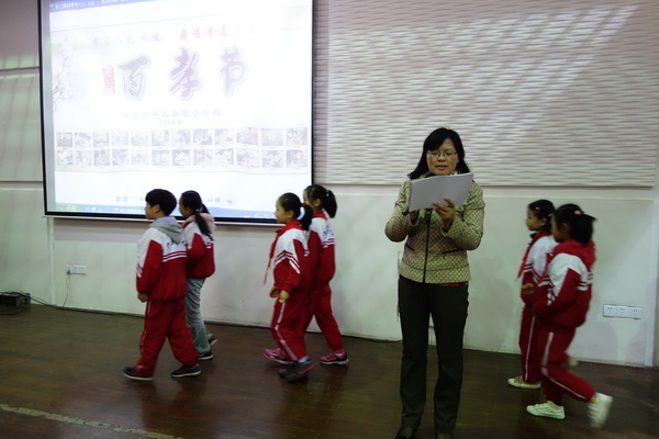朗诵过后,我校徐玉英上台进行百孝节的致辞,徐校长表示,孝传统是我国人伦道德的基石,孝文化是中华文化的瑰宝,孝永远是一颗闪耀着人伦之光的璀璨明珠。徐校长相信今后会有更多的孝子孝孙涌现,平直的孝道文化也会继续传承,继续传播!
