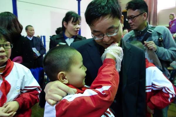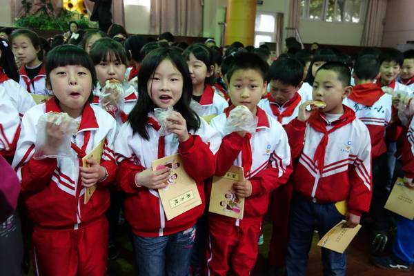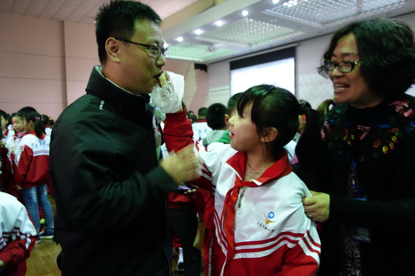 孩子们一起诵起了“孝”童谣,把活动推向了最高潮。一张张充满稚气的小脸显得何其认真与专注。父母的关爱、爷爷的操劳、奶奶的唠叨……一件件往事涌上了心头,怎能不叫孩子们感慨良多呢?家长代表们也听着童谣,和孩子们共享着“救娘饼”,内心中收获着感动与欣慰。