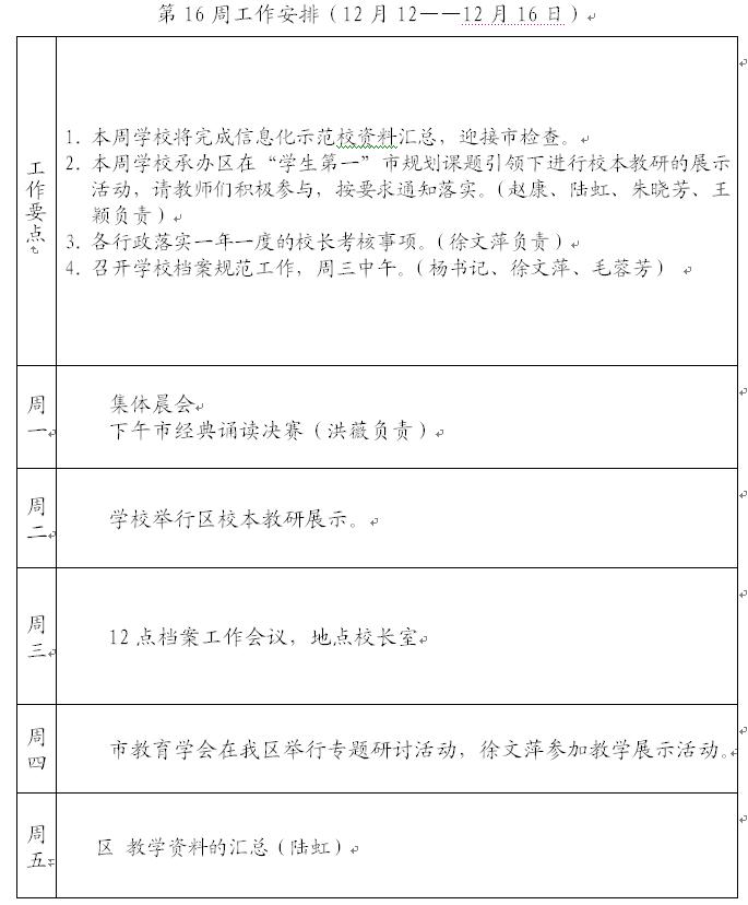 2011-2012第一学期第16周工作计划