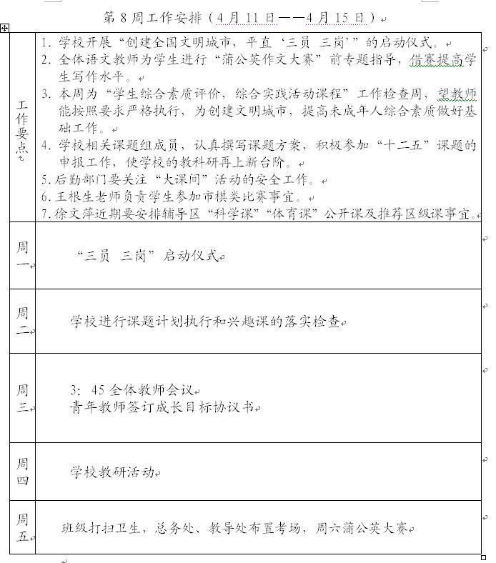 2010-2011第二学期第8周工作计划