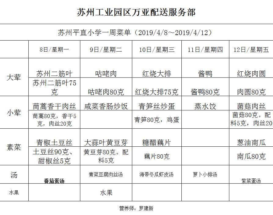 学校2018~2019学年度第二学期第8周菜单