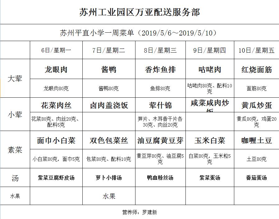 学校2018~2019学年度第二学期第11周菜单