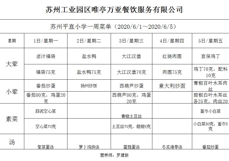 学校2019~2020学年度第二学期第8周菜单
