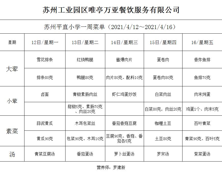 学校2020~2021学年度第二学期第7周菜单