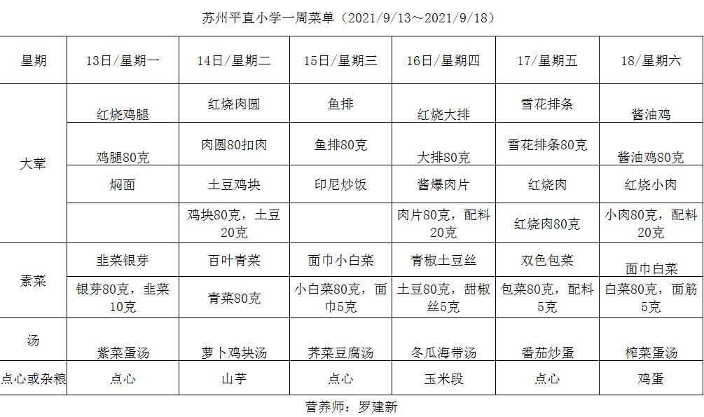 学校2021~2022学年度第一学期第4周菜单