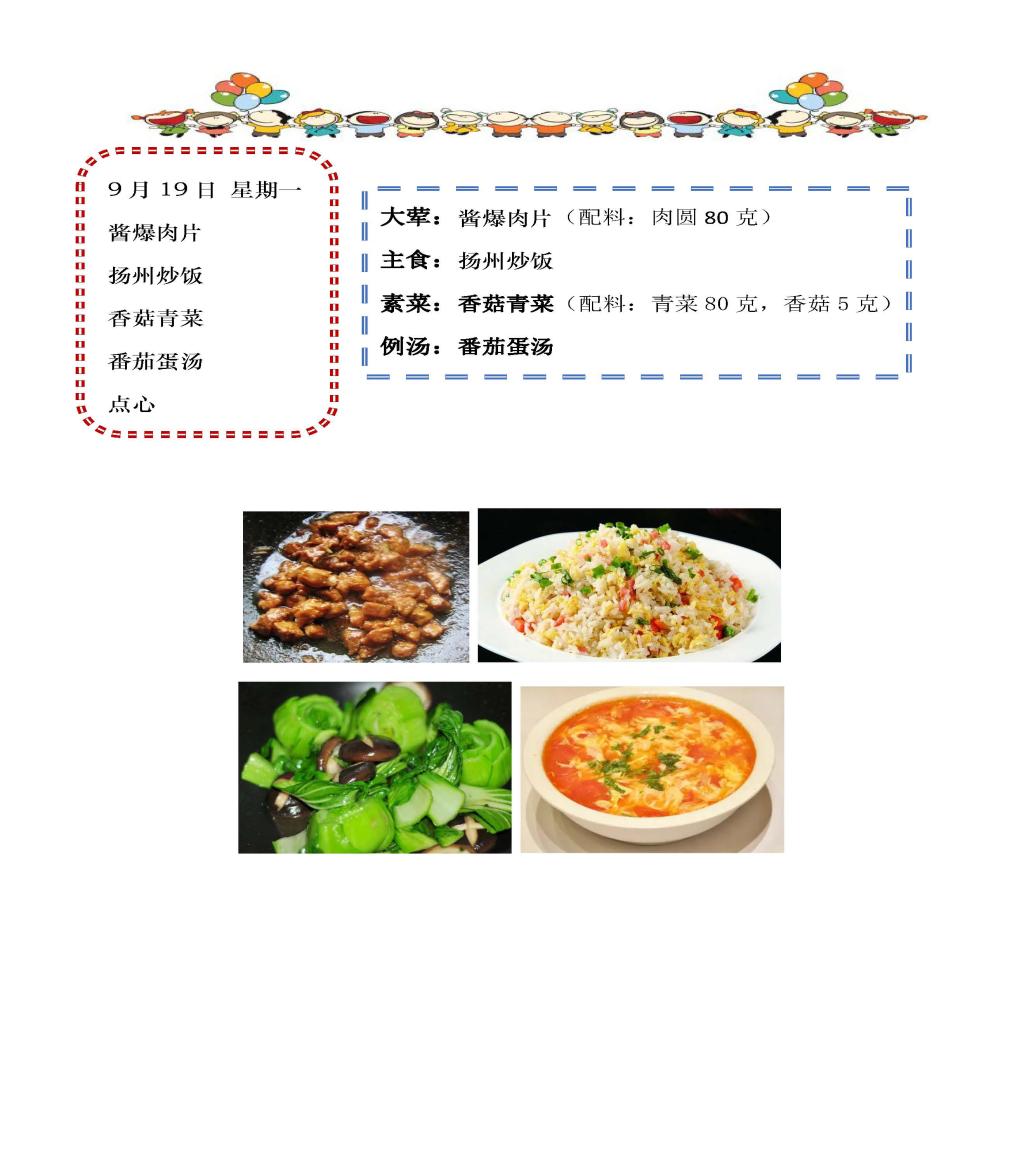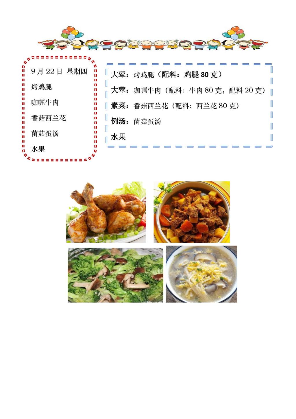 学校2022~2023学年度第一学期第4周菜单