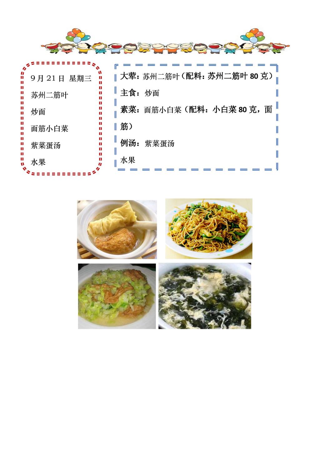 学校2022~2023学年度第一学期第3周菜单
